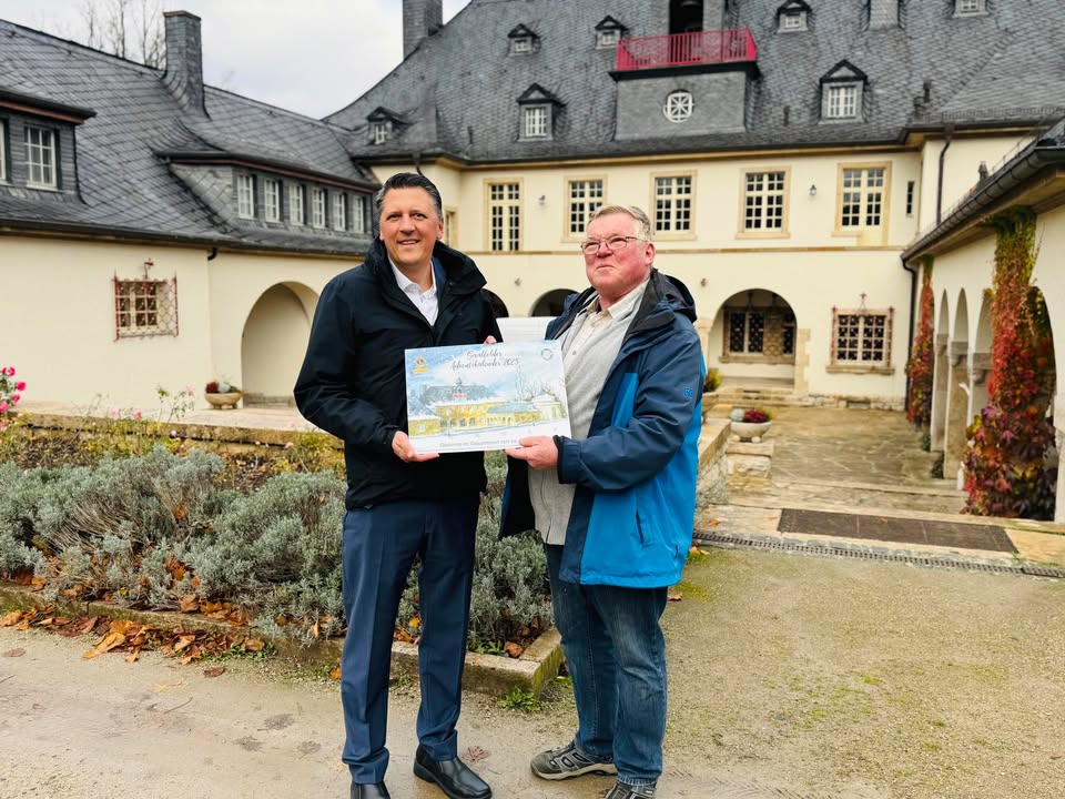 🎄 Der Saalfelder Adventskalender ist wieder da! 🎁Die gemeinsame Aktion des Lions Club Saalfeld und des Saalfelder Werbering e.V. bringt auch in diesem Jahr Freude und soziales Engagement zusammen.🎨 Das diesjährige Wintermotiv zeigt die neu sanierte Villa Bergfried, gestaltet von einer einheimischen Künstlerin. Zum Auftakt der Aktion konnte ich, als Präsident des Lions Club Saalfeld, ein Exemplar an Michael Schöpe vom Verein "Freunde des Bergfriedes" überreichen.Mit dem Erlös werden regionale Projekte unterstützt, zum Beispiel Weihnachtsgeschenke für benachteiligte Kinder und das Bildungsprojekt "Unser kleiner Gemüsegarten" im ASB-Kindergarten Gorndorf.#Saalfeld #Adventskalender #LionsClub #LionsClubSaalfeld #VillaBergfried #GemeinsamGutesTun